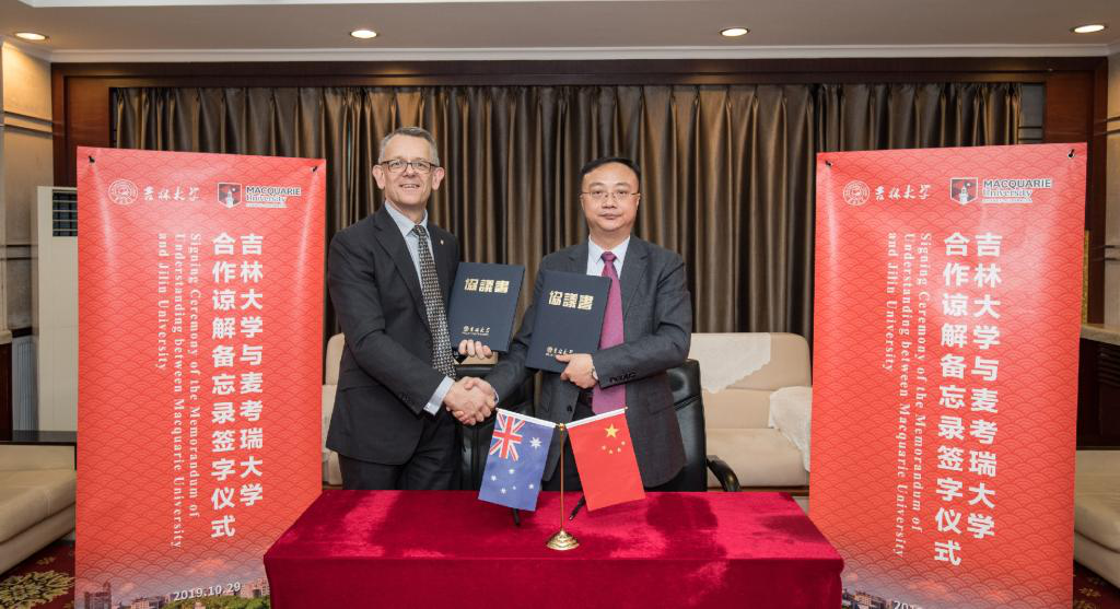 During the visit, Professor Zhao Hongwei, Vice President of Jilin University and David Wilkinson signed The Memorandum of Understanding between Macquarie University and Jilin University, and attended the unveiling ceremony of the Joint Audiology Center.