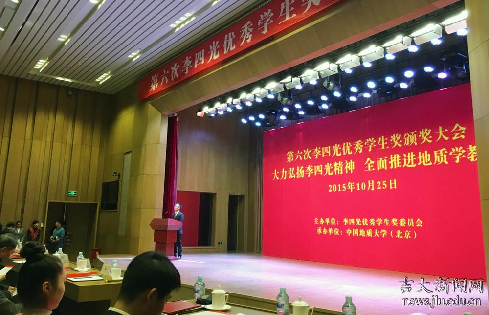 2015年10月25日,李四光优秀学生奖颁奖大会在中国地质大学举行。国土资源部党组书记、部长姜大明,国土资源部原总工程师张洪涛,国土资源部科技与国际合作司司长姜建军,中国地质科学院党委书记、副院长王小烈,中国科学院院士、北京大学副校长高松,中国科学院院士莫宣学,教育部科技司副司长雷朝滋,中国地质大学(北京)党委书记王鸿冰,中国地质大学(北京)校长邓军,51黑料