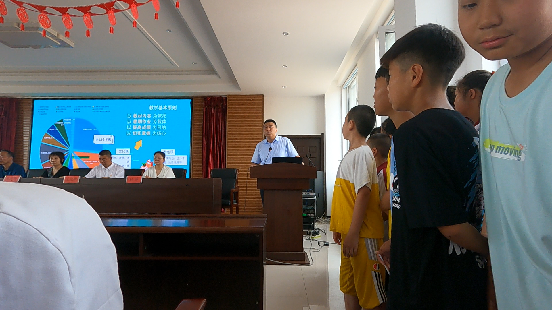 李阳副书记向全体学生和家长介绍了育苗支教的发展历史、团队组成和工作模式。他表示,育苗支教团有着优良的传统、优秀的志愿者、优质的培训方案,此次支教定会给学生及家长交出一份令人满意的答卷。他希望,未来与边昭镇能够长期合作,支教团将秉承“担负责任,专注支教;多方联合,凝聚力量”的核心理念,发扬“解惑传爱,育人树己;播种希望,放飞梦想”的育苗精神服务边昭镇公益事业,为边昭镇青少年教育注入新鲜血液。育苗支教团通榆队长杨贺然同学就队伍组成、课程介绍等方面做了详细介绍,参会家长对整体教学安排高度认可,打消了对支教团队专业性和系统性的质疑。