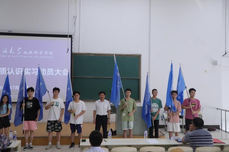 为调动实习师生的积极性,从2020年开始,首次在长春周边认识实习过程中加入优秀实习班级评选等内容,并制定了《长春周边认识实习优秀班级评选细则》。为增强实习的趣味性,培养科学思维,近两年,实习队在路线实习结束后举办“认识实习综合地质知识与技能竞赛”,并制定了《长春周边认识实习综合地质知识与技能竞赛操作流程》,学生针对实习中感兴趣的地质现象、科学问题,通过查阅收集资料进行简短的PPT “专题汇报展示”。为提高大家对认识实习的重视程度,单玄龙院长今年亲自出席实习动员大会并作动员讲话,并首次为各实习班级授旗,实习的仪式感进一步增强。