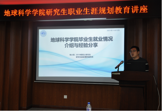 毕业生就业情况介绍及经验分享会”。以自己在就业工作中的所思所感为切入,运用案例分析的方法帮助同学们树立正确的就业观,做好从研一开始的就业规划。