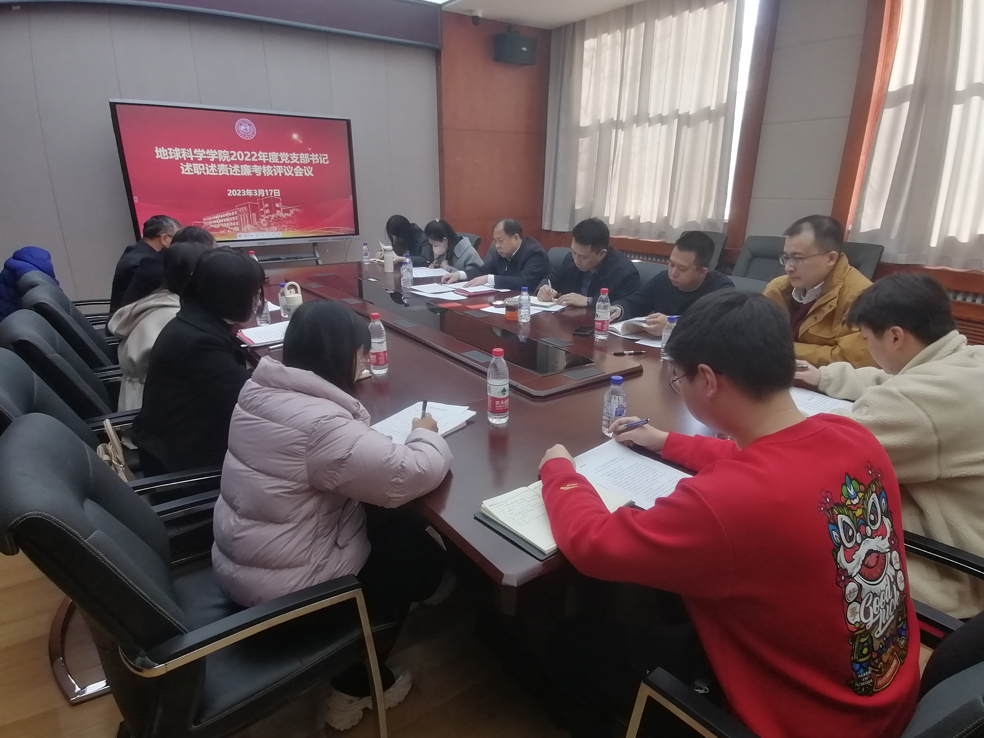党委于2023年3月17日在鸽子楼109-2会议室举行了2022年度党支部书记述职考核评议会议,会议由学院党委书记杨洲主持,党委副书记李阳、党委副书记、纪委书记马旭参加了会议。