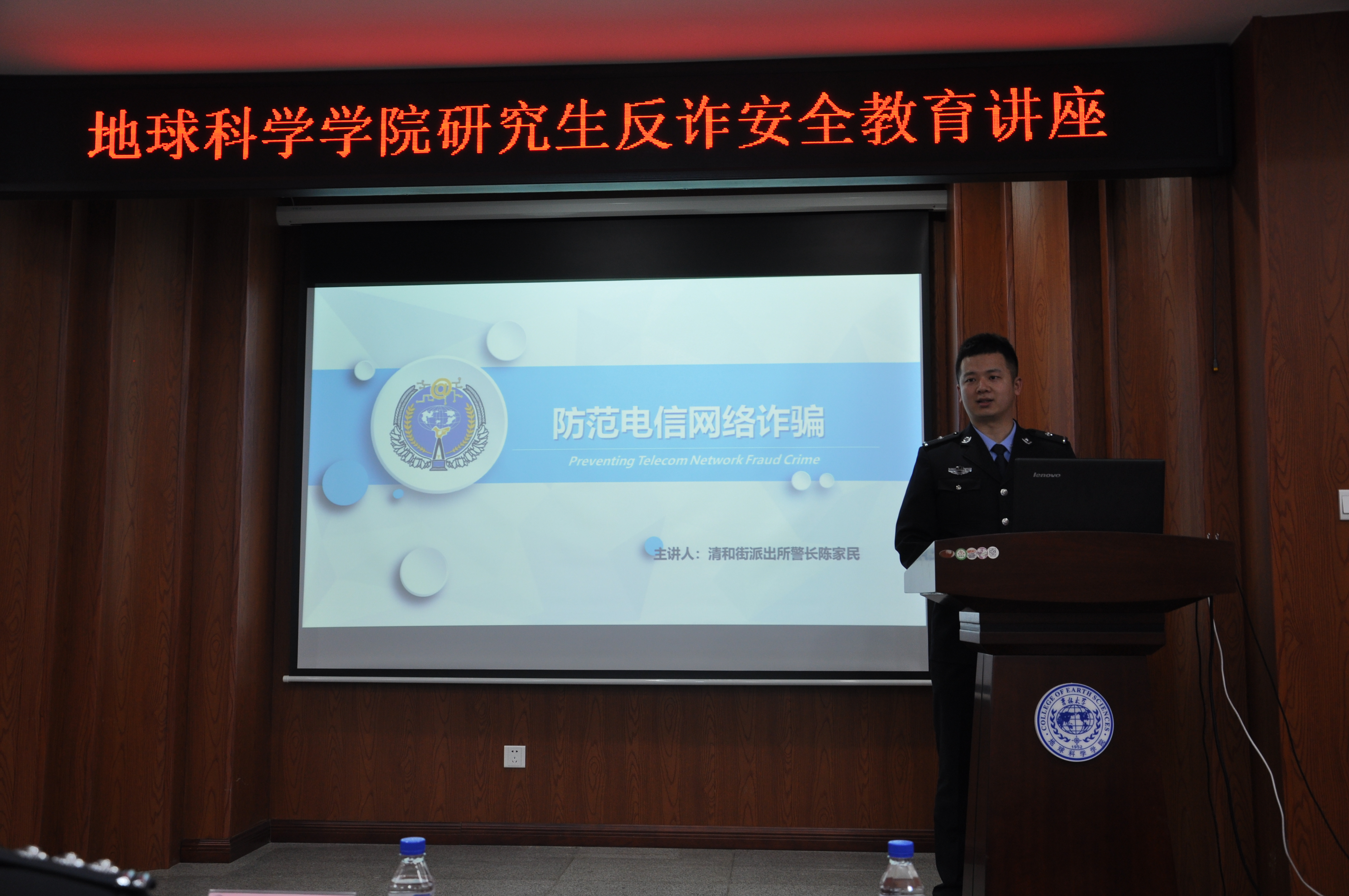 4月3日晚6点,以“防范电信网络诈骗”为主题的安全教育讲座在鸽子楼一楼报告厅举办。讲座上,清河街派出所民警陈家民为同学们讲授了电信网络诈骗的特点,列举了常见的电信诈骗类型和诈骗手段,分享了防范电信网络诈骗要点,并希望同学们能够提高个人安全意识,防患于未然,切实维护好自身的合法权益。
