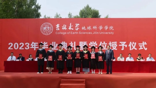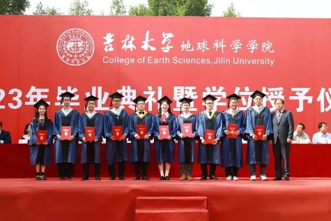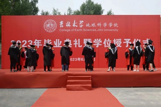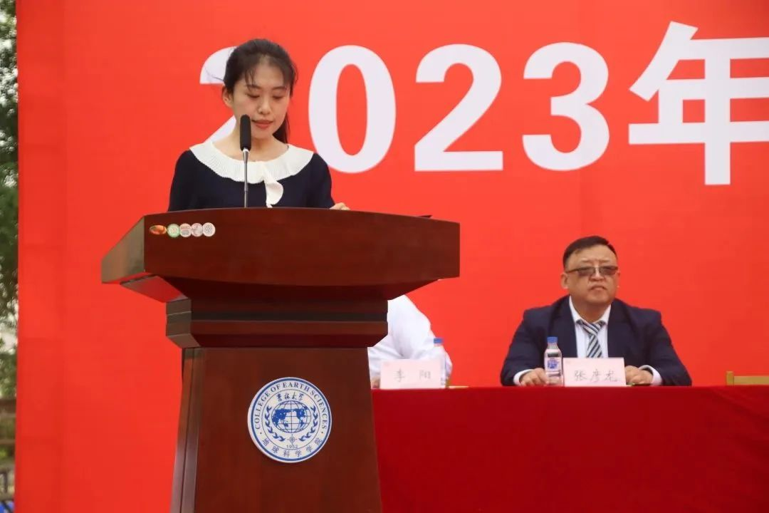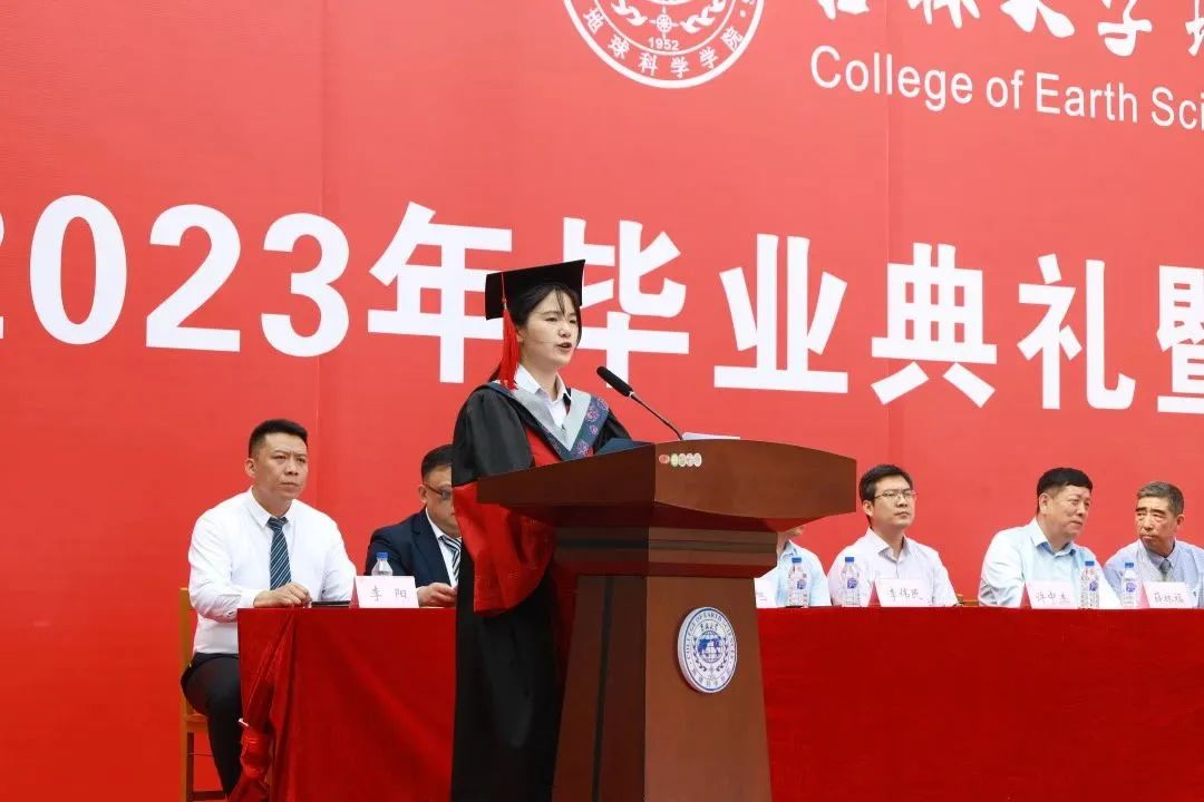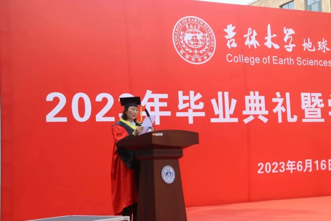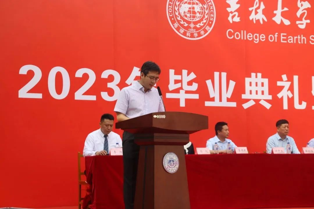 在院长致辞环节,单玄龙院长为所有毕业生致以真挚的祝福。23届的毕业生是最特别的一届毕业生,大学四年疫情就占了三年,但同学们在这场历史考验中顾大局、识大体、明大义,克服了种种困难完成了学业。惟其艰难,方显勇毅;惟其磨砺,始得玉成。同学们在人生最美好的年华,来到吉大,逐梦远航,与学院共同成长。回望来时路,你们与伟大时代“双向奔赴”,展望新征程,这方校园,再次成为你们人生的新起点,你们即将扬帆起航,开启新征程,希望你们无论何时,都要不忘地学荣光,手握科技报国的“爱国锤”;无论何时,都要不忘地质初心,手持恪守自我的“人生罗盘”;无论何时,都要不忘地学理想,手执追求卓越的“奋斗放大镜”。此去当是良辰美景;他日归来,仍当是少年。有朋自远方来,又赴远方,但无论远方有多远,鸽子楼永远是你们的摇篮!