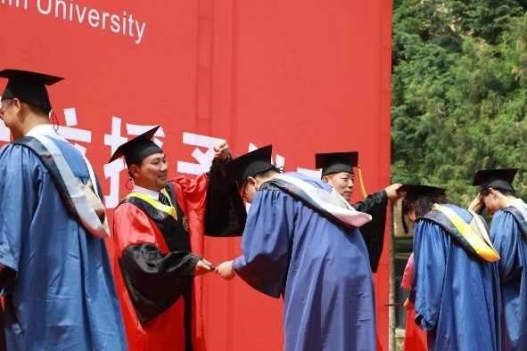 校歌》。随后进行了集体毕业照的拍摄。大家都长久期盼毕业,可真到了这一刻,唯有不舍,纵然不舍,同学们都以最饱满的热情和最真挚的笑容面向镜头,为大学生活划上了圆满的句号。