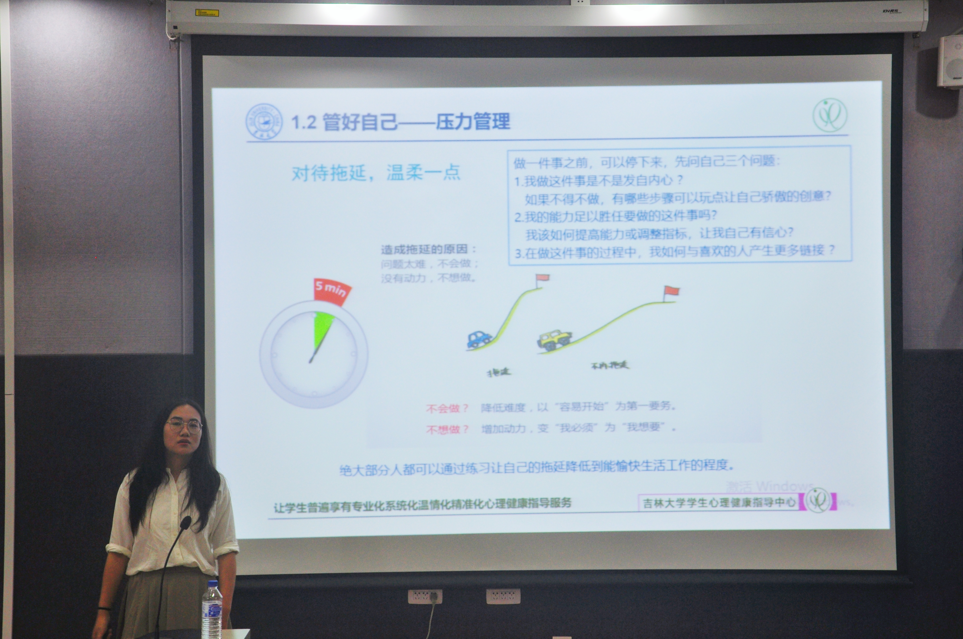 随后,张老师围绕心理健康知识的宣传普及、研究生心理健康的影响因素、增进心理健康的策略、学校的心理健康指导服务等内容,从“管理好自己”、“利用好资源”两个方面展开,强调了目标管理、压力管理和时间管理的重要性和意义,给出了如何利用知识资源、人际资源和专业资源的宝贵建议。最后,张老师呼吁同学们在遇到难以解决的心理问题时,应主动寻求帮助,借助专业的力量,51黑料