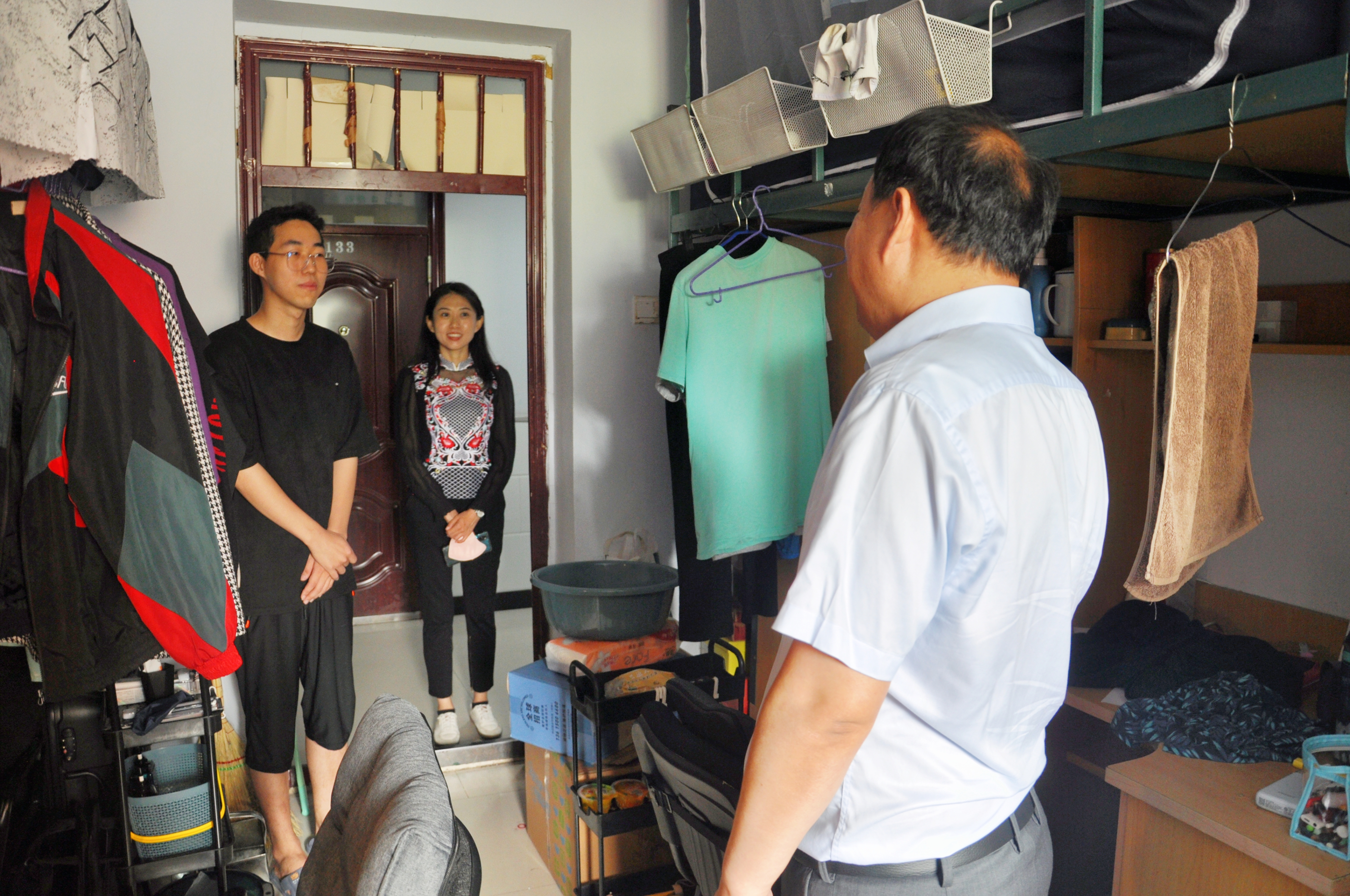 秋风去暑气,关怀为学生。为深入了解研究生新生到校适应情况,掌握研究生思想动态,解决实际问题,帮助研究生尽快融入学习和生活,9月4日上午,学院党委书记杨洲、党委副书记马旭、研究生辅导员姜鹏一起深入研究生新生寝室走访慰问。