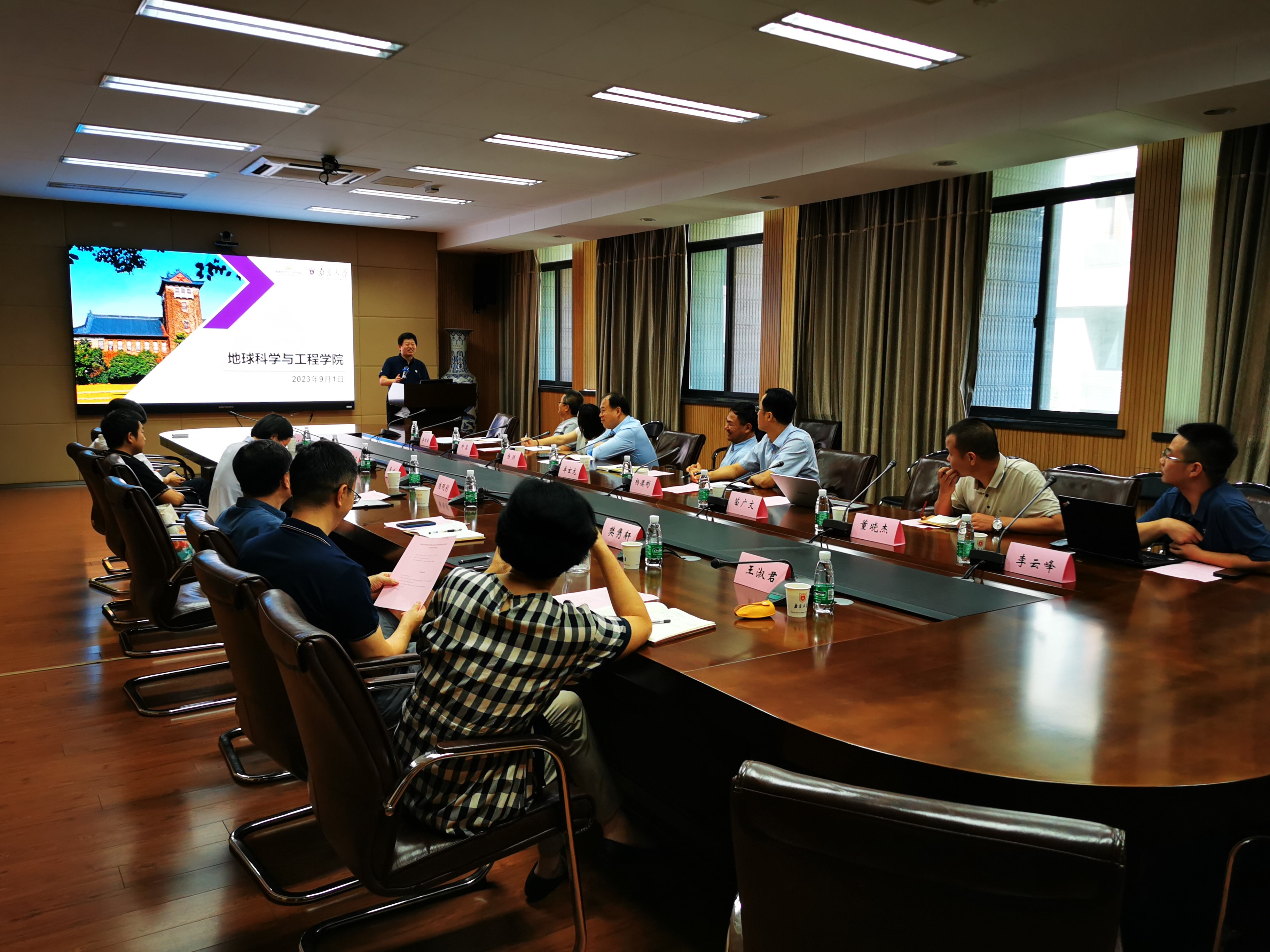 9月1日上午,单玄龙院长、杨洲书记一行来到南京大学地球科学与工程学院进行座谈交流。座谈会由党委书记董婷主持。首先,双方院长陆现彩、单玄龙对各自学院的基本情况进行了介绍。随后,围绕“李四光班”的建设与运行、师资和人才队伍建设、研究生培养等方面的问题与对方进行了深入交流。南京大学地球科学与工程学院唐朝生、夏敏副院长,朱文斌、樊隽轩教授,院办王淑君主任参加了座谈交流活动。
