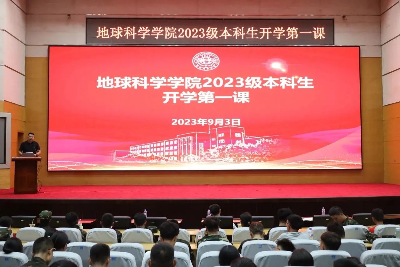 为了让新生对地球科学有更深入的理解和认识,对大学生活有更好的规划,我院于2023年9月3日晚六点在东荣会议中心举办了新生“开学第一课”活动。本次报告由院长单玄龙教授主讲,报告主题为“奥秘地球,精彩人生”。党委副书记兼副院长李阳、23级辅导员杨凯凯和全体本科新生参加活动。