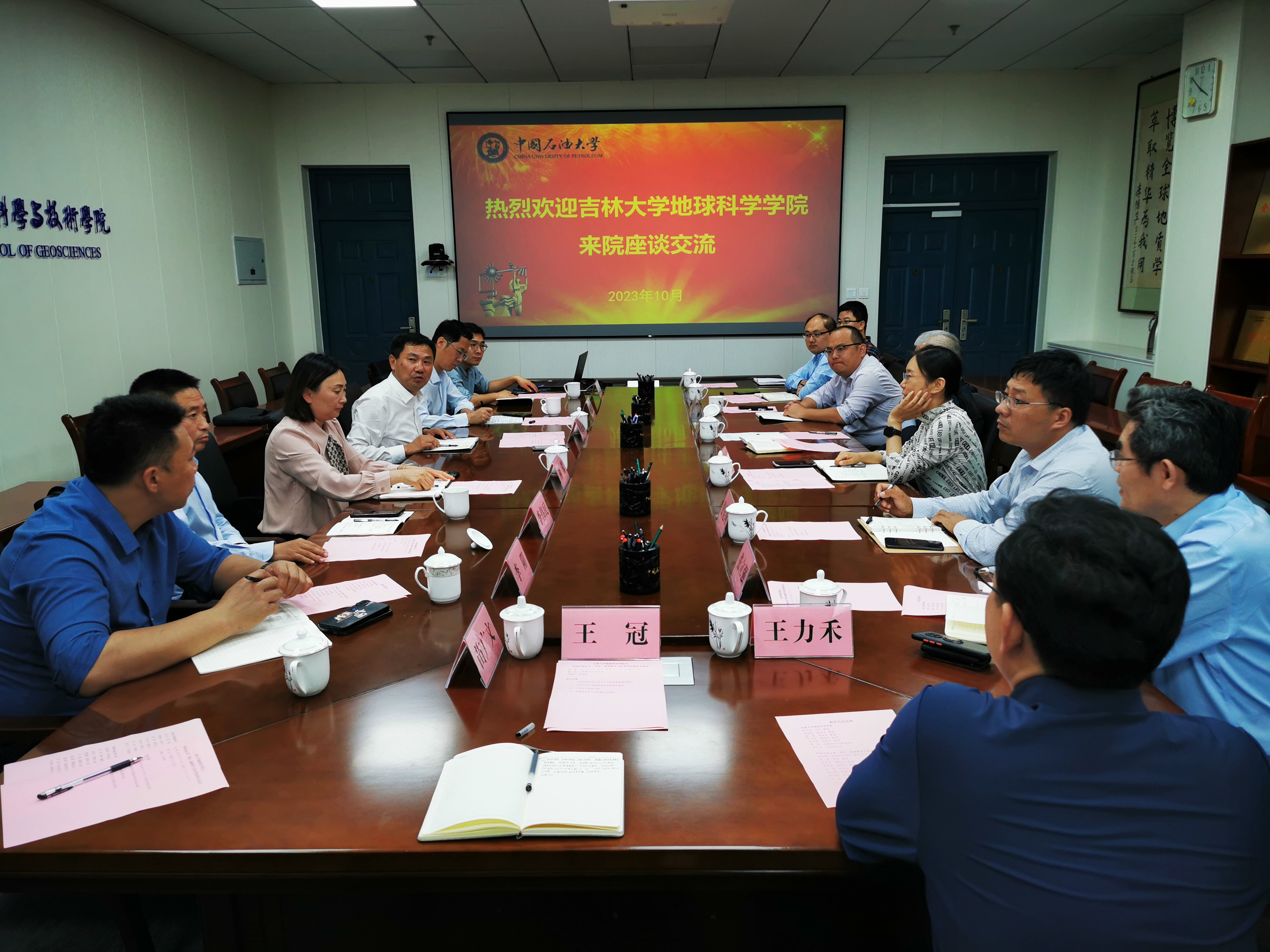 10月18日下午,考察团赴中国石油大学(华东)地球科学与技术学院开展座谈交流。座谈交流会由贵校党委常委、学院党委书记赵放辉主持。院长刘华、单玄龙分别介绍了学院的基本概况,双方在拔尖创新、教材与教学团队、青年人才队伍建设、研究生培养等方面展开了深入的交流。会后,在刘华院长的带领下参观了深层油气全国重点实验室。贵院宗兆云、张宪国、王建副院长、资源系张立强主任、地质系党支部孟凡超书记、办公室王冠主任及团委王力禾书记参加了座谈交流活动。