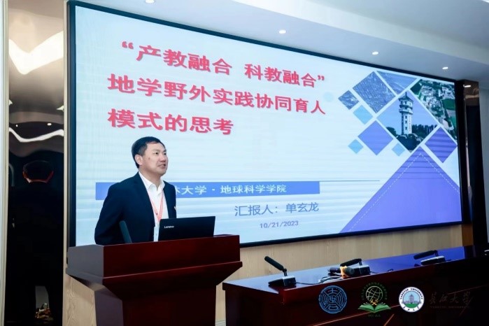 院长单玄龙应邀参加年会并于21日上午做题为“产教融合科教融合地学野外实践协同育人模式的思考”的年会专题报告。