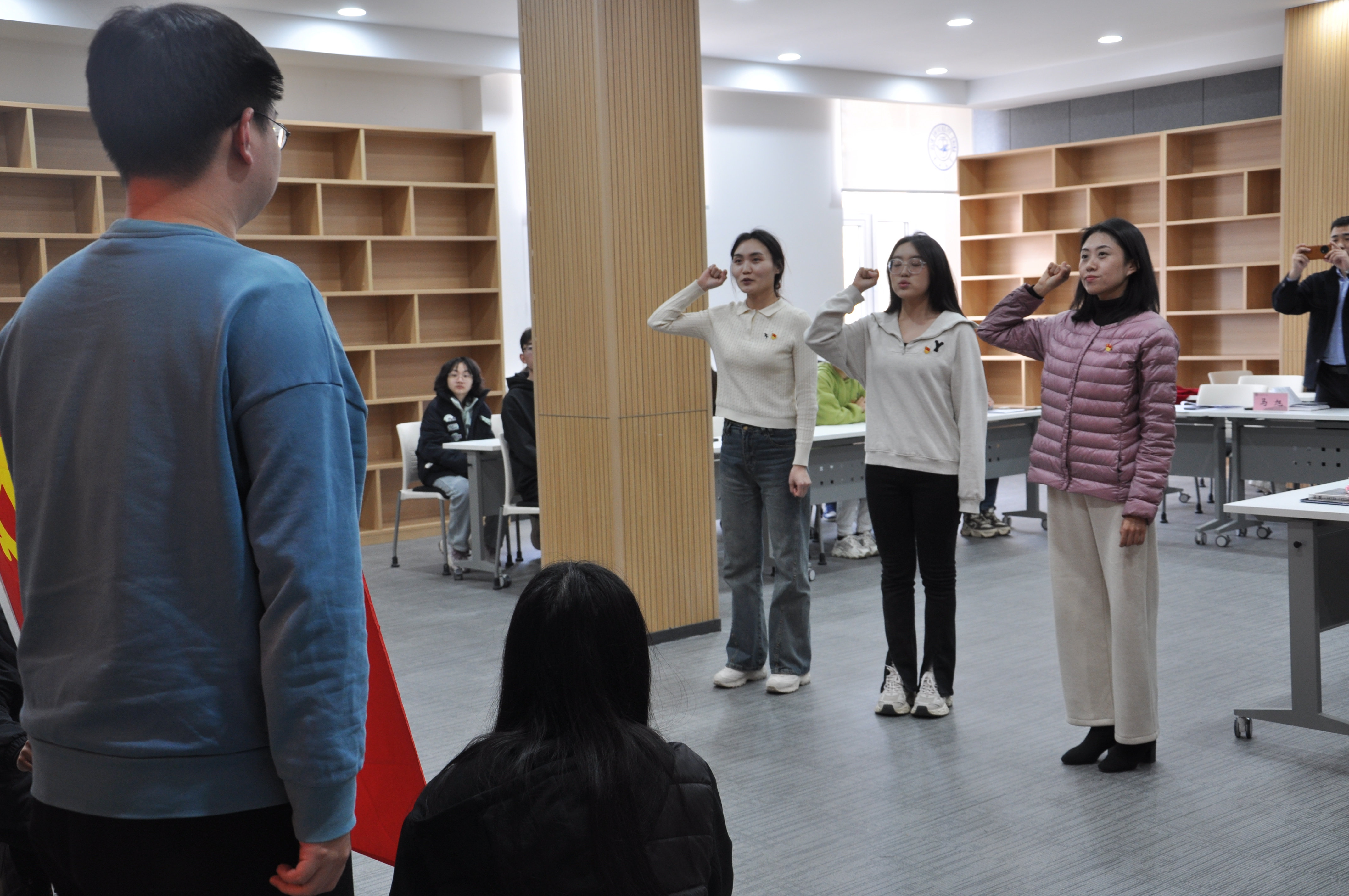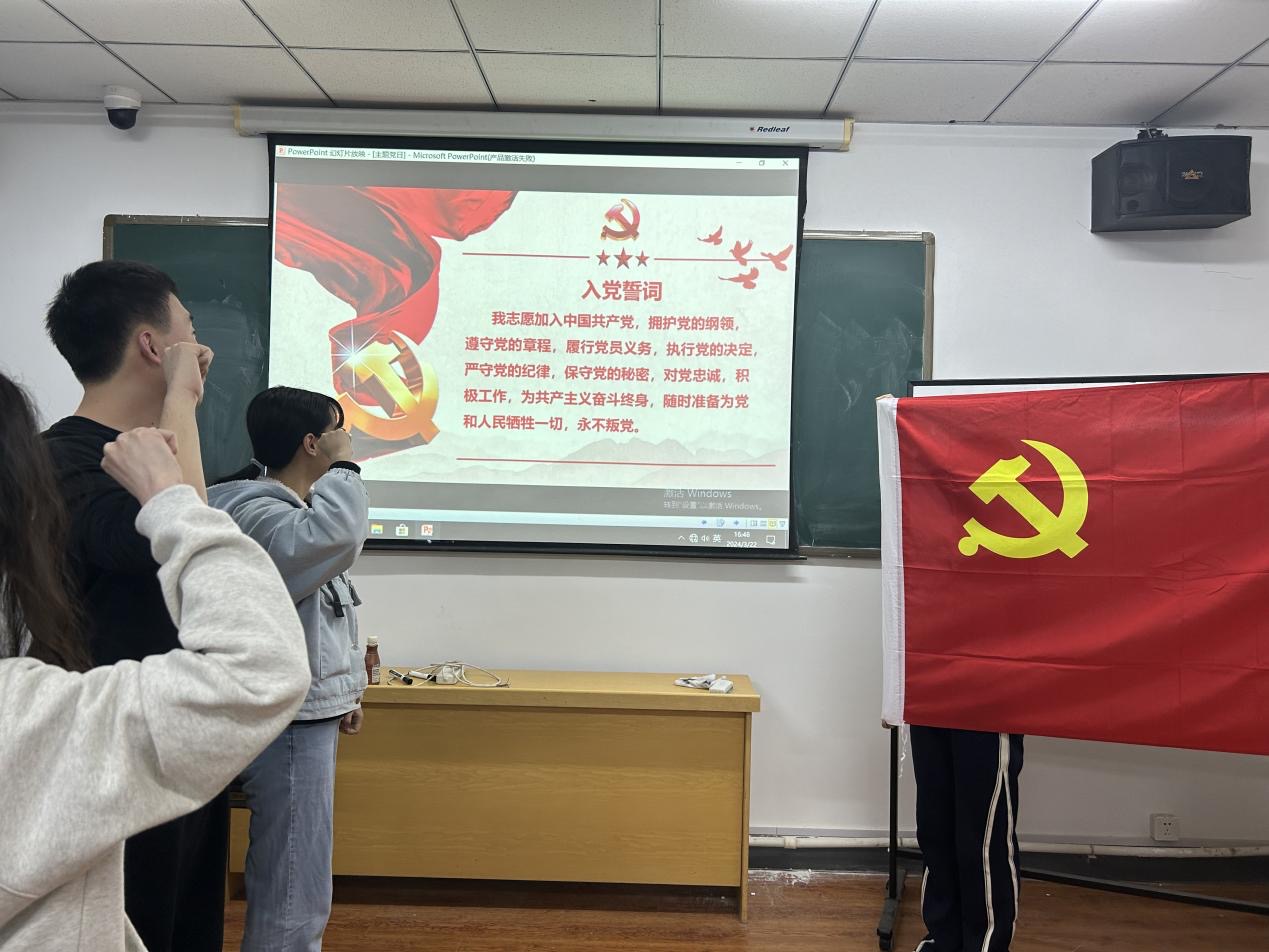 为加强研究生党员教育管理工作,通过入党宣誓增强新党员身份认同、思想认同、情感认同和政治认同,2024年4月1日,硕士学生第二党支部在鸽子楼举行了新发展党员入党宣誓仪式。学院党委副书记马旭、研究生辅导员姜鹏出席仪式。