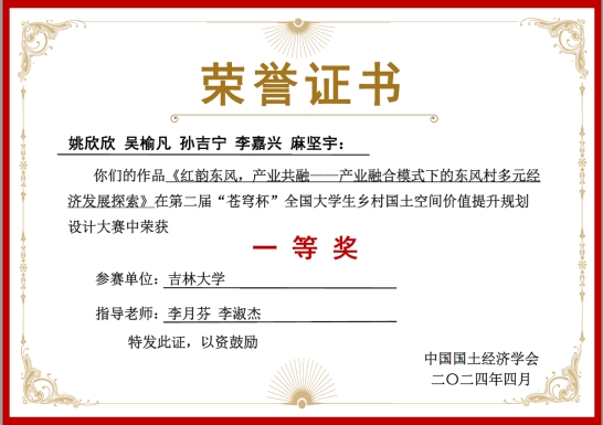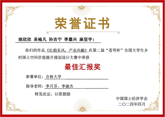 代表队与北京师范大学代表队、中国地质大学(北京)代表队、东北农业大学代表队等15支队伍同组竞技。经作品展示、汇报、答辩和专家点评等环节,我校选手表现出较高的专业水准、临场应辩能力和良好的精神风貌,最终荣获三项佳绩。学子们不仅在大赛中展现了扎实的专业素养和创新能力,同时也通过大赛的锻炼,显著地提高了专业技能;而学子们的优秀作品,则为乡村国土空间价值的提升提供了宝贵的思路和方案。
