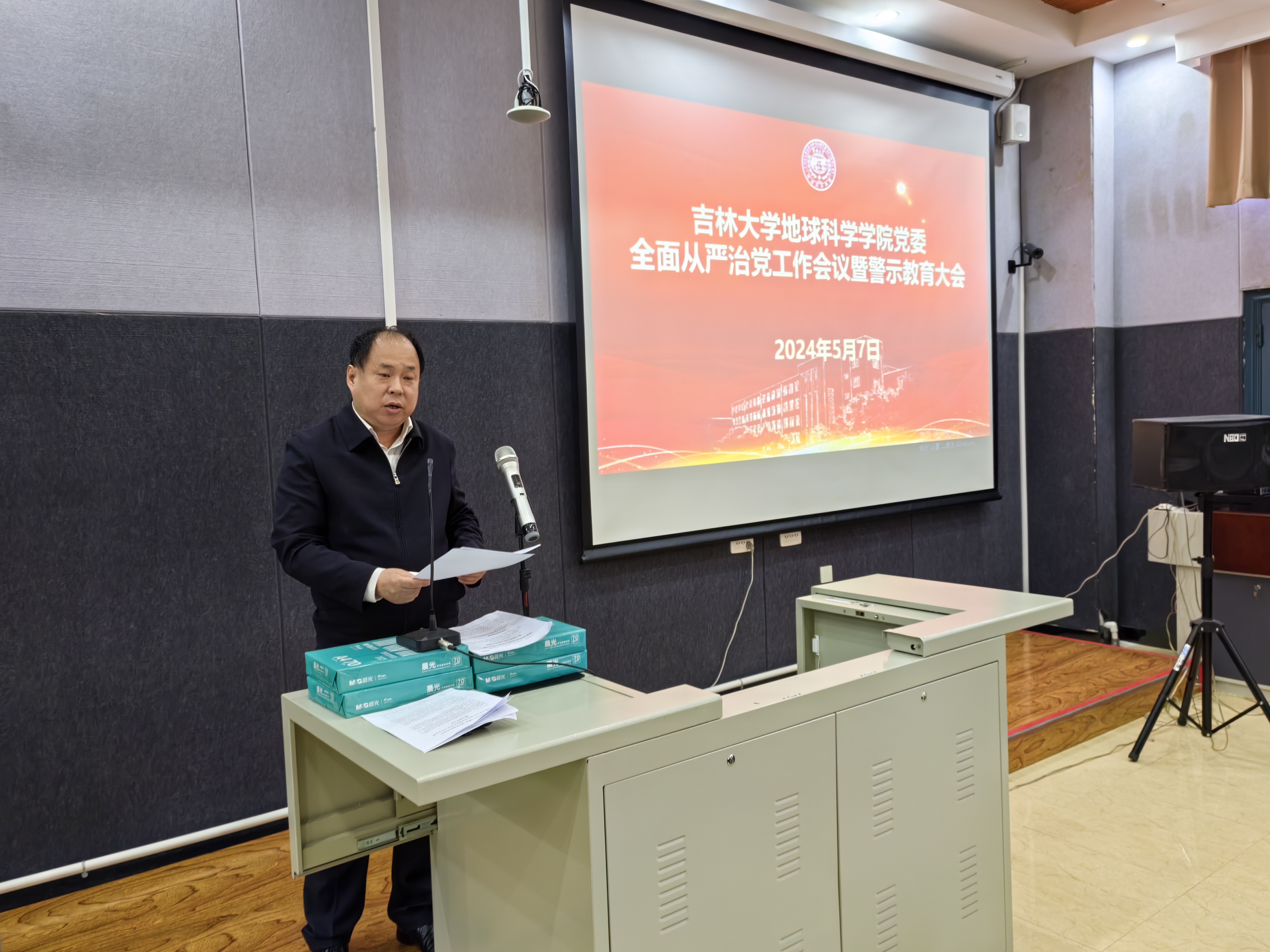 为进一步强化全面从严治党,持续推进党委党纪学习教育深入开展,引导广大教职工涵养高尚师德,5月7日下午,学院党委召开全面从严治党工作会议暨警示教育大会,学院全体教职工参加会议。会议由学院党委书记杨洲主持。