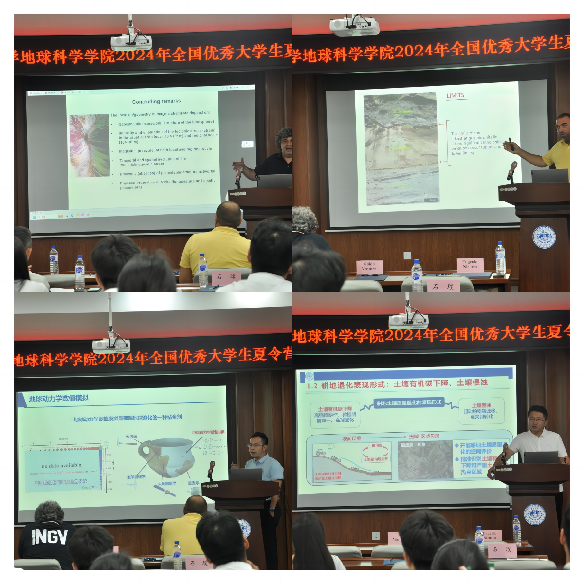 副教授石璞分别为大家带来学术报告。题目分别为:The role of tectonics in controlling the location and geometry of magma chambers(构造在控制岩浆室的位置和几何形状方面的作用)、From the explosions to the deposits: main clues on explosive activity and of their impact(从爆炸到沉积:爆炸活动及其影响的主要线索)、地球动力学:探索宜居地球演化的关键手段、东北黑土区耕地土壤质量退化的遥感评价模型研究。