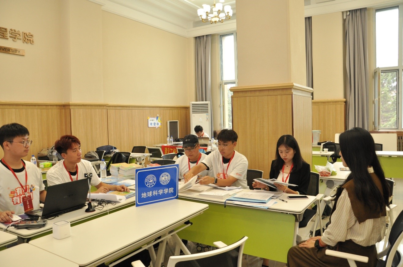 8月21日当天虽降雨不止,但学院前期已做好相关应急预案,在学校的统一安排下移步至室内确保了迎新工作的稳步进行。迎新现场气氛热烈,2024级研究生新生于五湖四海中来,满怀着欣喜与憧憬,相约吉大、相聚地科,以新生力迎接新起点、开启新“研”途。迎新志愿者分工明确、有条不紊,以饱满的热情完成了新生报到引导、人脸识别与信息核验、新生材料物品发放等工作。“同学,欢迎来到地科”“路程遥远,旅程还顺利不”,迎新志愿者用始终如一的热情、亲切体贴的温情、踏实至诚的真情温暖着每一位不远万里来到北国春城的新吉大地科人,以“一对一”的服务让新生与学院、学校之间更加贴近贴紧贴实,努力使吉大地科成为新生们的“第二故乡”。