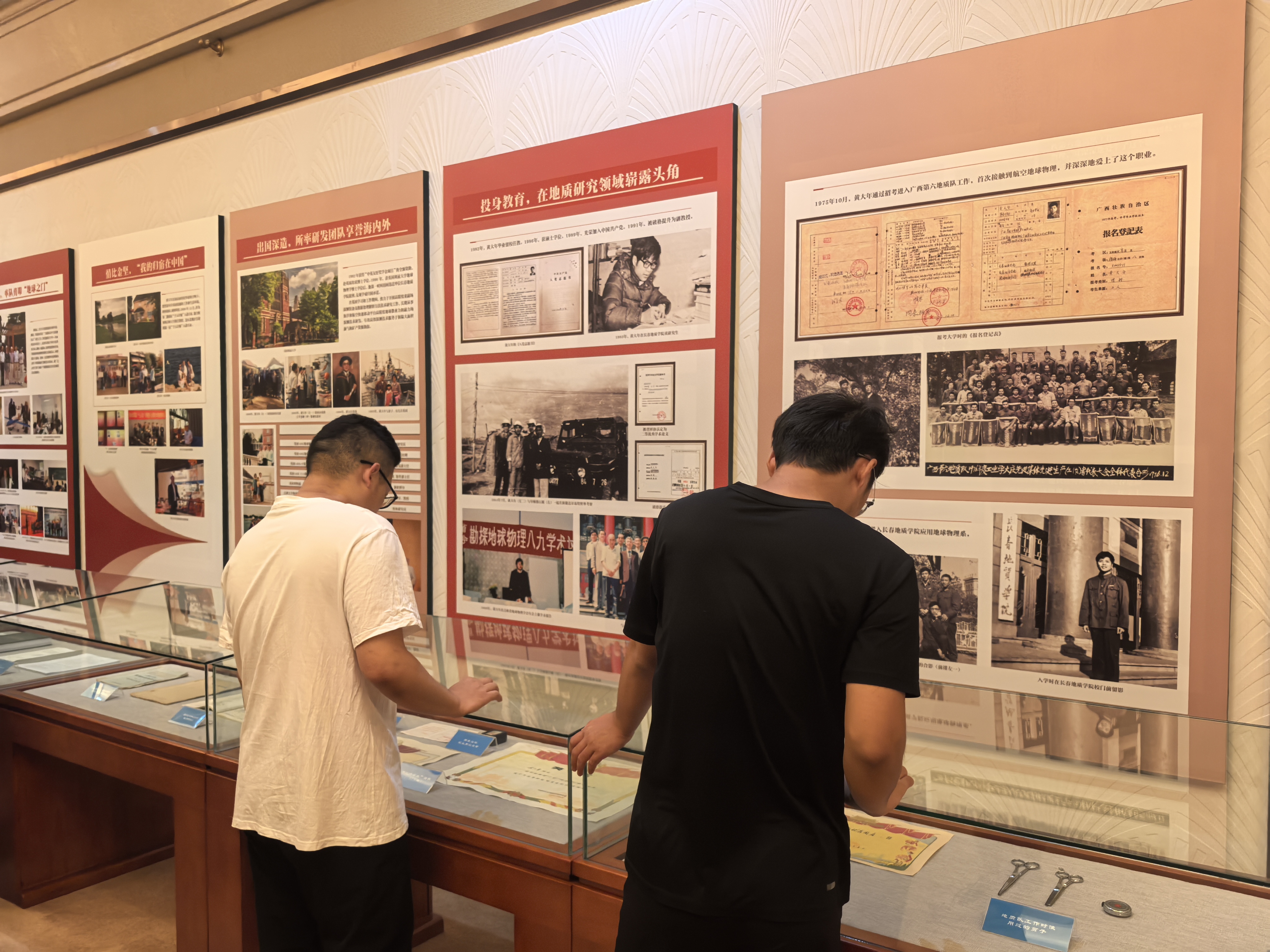 步入黄大年生前办公室,时光仿佛定格在他伏案科研的瞬间。书架上整齐排列的专业书籍,墙面上密密麻麻的日程表,无声诉说着黄大年“把每一分钟都用在实处”的奋斗故事,让刚踏入科研大门的新生直观懂得入学后该有的奋斗姿态。展区电子屏前,同学们纷纷驻足。屏幕上循环播放着黄大年的归国感悟:“回到祖国,就像回到了奋斗的起点,这里有最需要我的事业。”滚烫的文字让初入学术领域的新生深刻明白,选择地学,不仅是选择专业,更是选择一份与国家需求同频的责任。