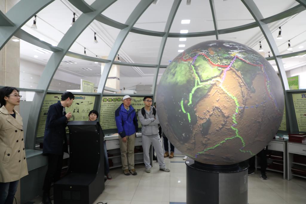 上午9点,同学们前往地球演化综合实验室。在霍亮老师的带领下,同学们通过观察岩石和古生物标本,结合自己的所学知识,一步一步恢复着前寒武纪到第四纪距今五亿年的地球演化进程。在此过程中,霍亮老师借助数字地球设备,为同学们展示了大陆板块的漂移、各个地质时期地球演化、火山活动与地震带、地震、海啸等灾难模拟、行星地质等典型的现象,帮助同学们进一步直观地感受地质演化。在孟庆涛教授的带领下,同学们参观了吉林省油页岩与共生能源矿产重点实验室,了解学院目前最先进的烃源岩评价设备。孟庆涛老师对各位同学寄予希望,希望大家能在未来的学习中,自己学做实验、多做实验、会做实验,这样才能在科研工作中发现问题,形成有自己独特的思路,才能在科研的道路上越走越远。