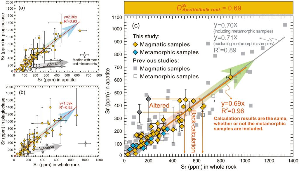 3. 确定了斜长石早期结晶以及磷灰石Sr含量对了解全岩成分的重要意义