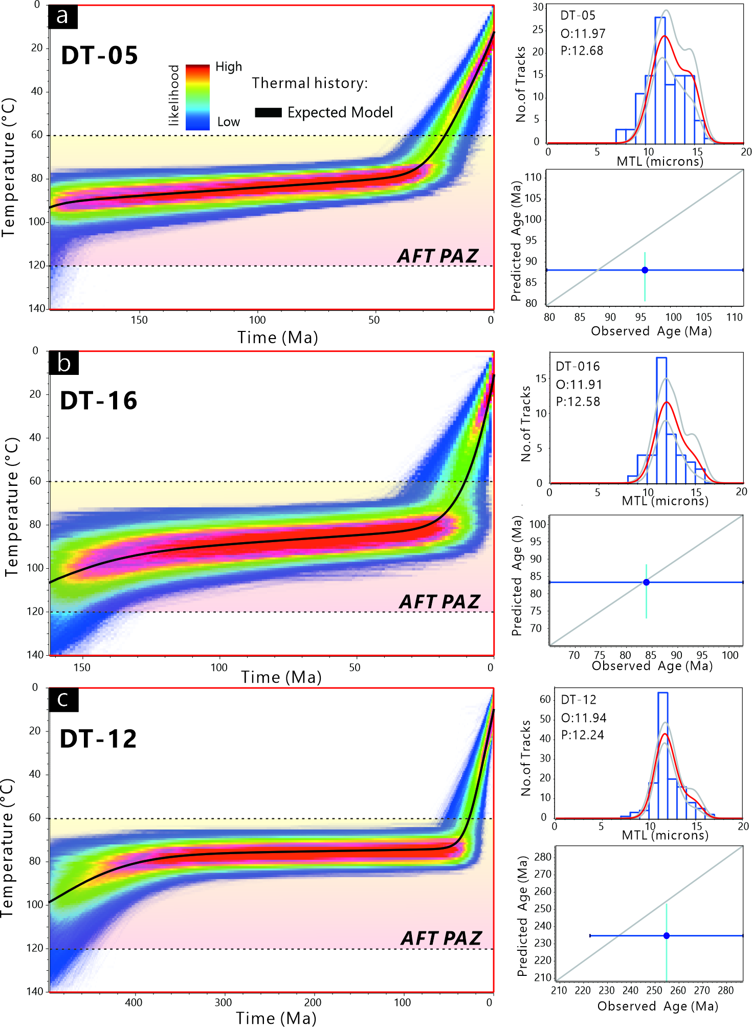图4山西裂谷北部口泉山基岩样品的磷灰石裂变径迹热历史模拟结果