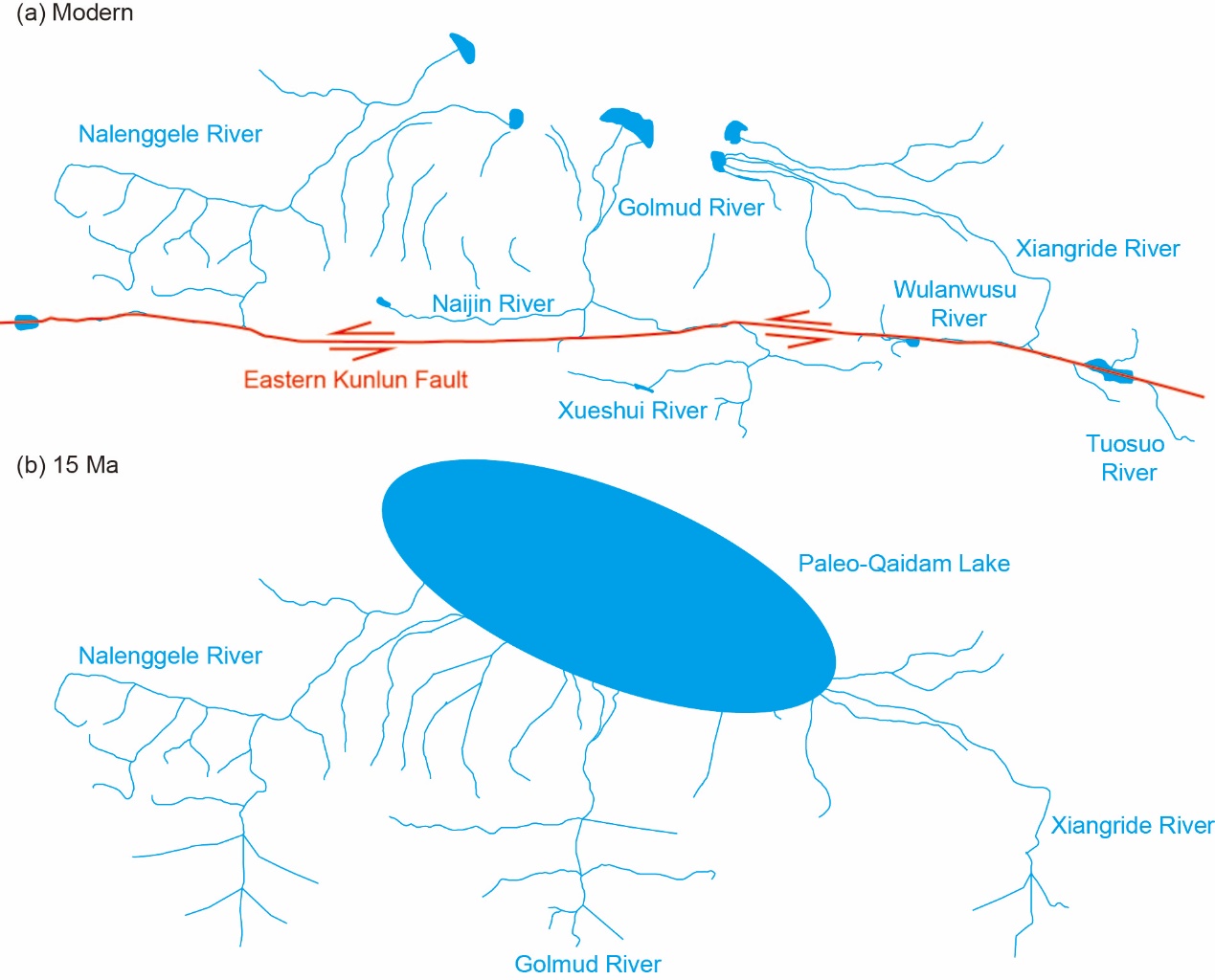 图1 东昆仑山水系演化简图