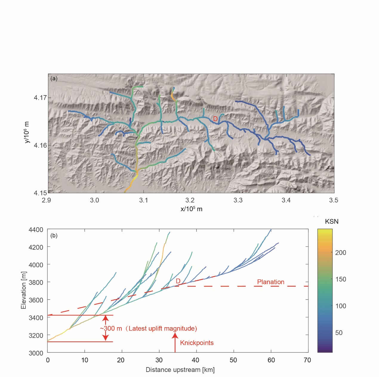 3. 柴达木盆地北缘东段的巴音河流域河流纵剖面存在明显的裂点,反映了宗务隆山地区新生代晚期经历了快速隆升事件,山前地区的河流陡峭指数显著高于祁连山中部地区。