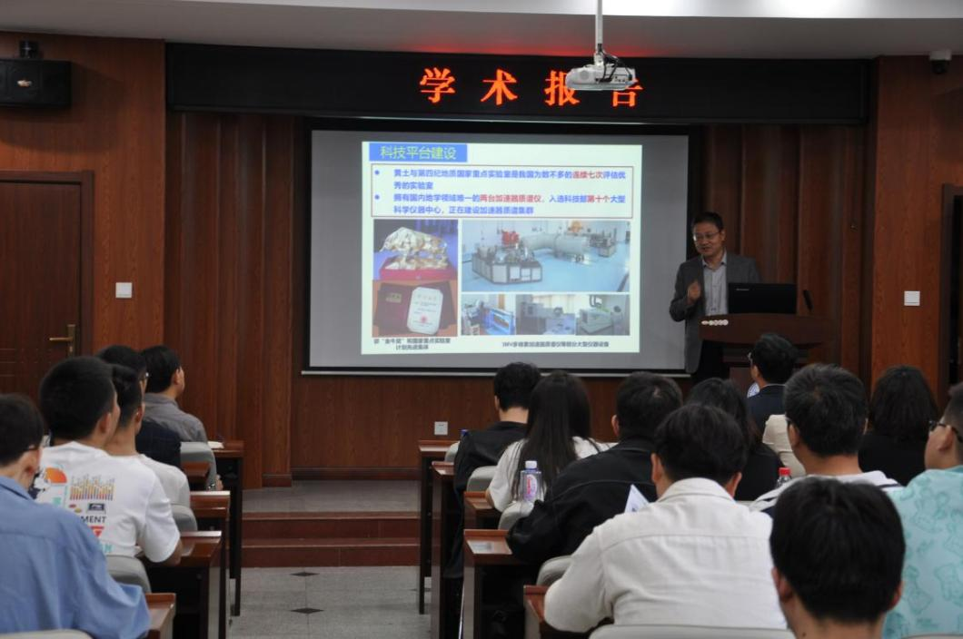 在交流探讨环节,金章东与参会师生针对瞬时堆积或微小结构与上下地层年代不对应的形成机理、研究地震对有机质降解和岩石风化的影响时是否需要考虑地区水文和温度等外在条件等专业问题进行了深入的交流研讨,现场气氛活跃,交流充分。