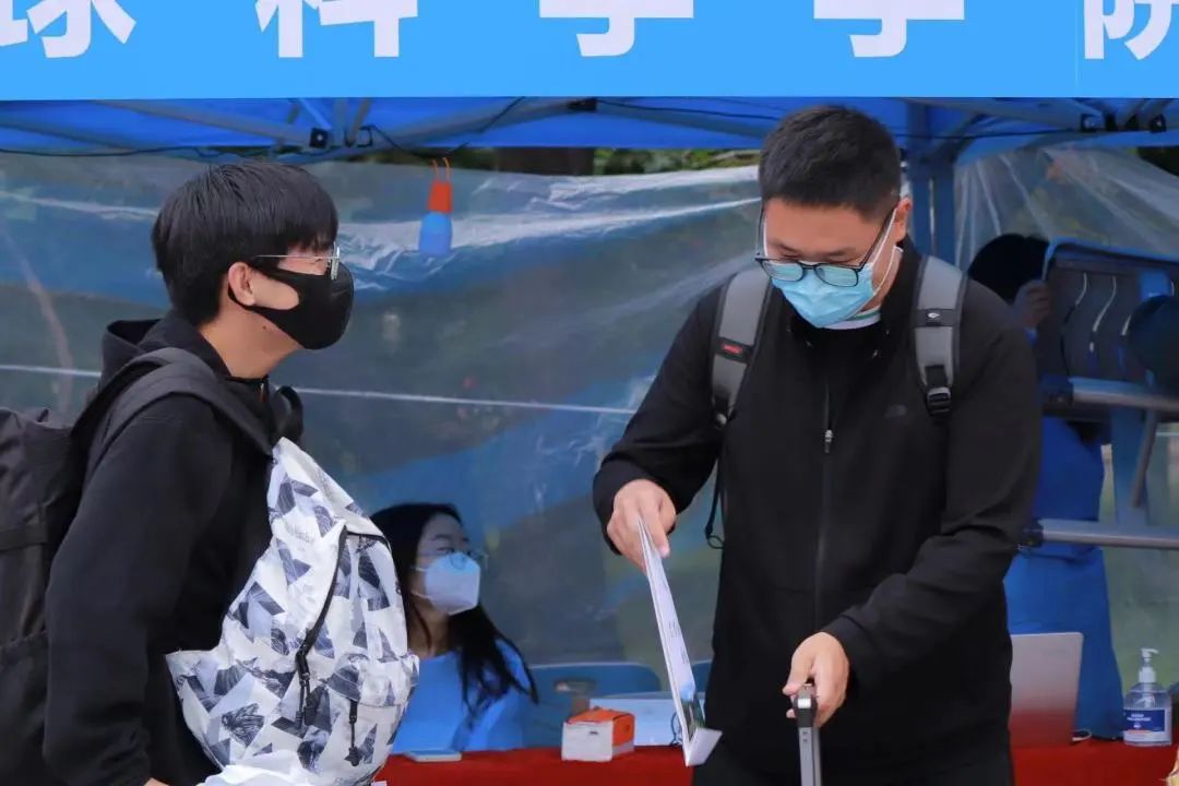 2022级新生报道工作在秋日的暖阳中有序展开,在学院党委副书记李阳老师、2022级辅导员曲鹏展老师和辅导员助理王锶淼的带领下,早上六点钟,我院迎新工作现场已布置妥当,各项迎新工作顺利进行。迎新现场,研究生和本科生志愿者们以饱满热情地态度等待新生的到来。