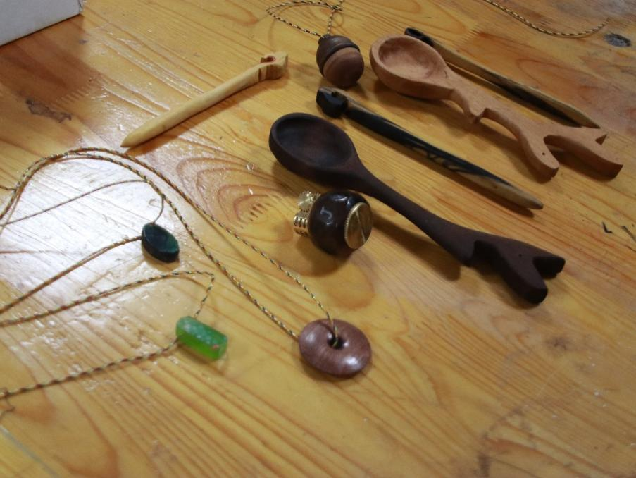 简单介绍过后,李阳老师向同学们介绍了木客空间内的操作设备,并向同学们展示了设备的操作方法。在展示了往届优秀作品后,同学们开始巧妙构思,精心思考,有了设计后在李阳老师的教导下将其实践制成作品。室外红枫萧瑟,屋内硕果累累。经过近四个小时的制作,同学们做成的发簪、平安扣、勺子、打火机和木铃铛赢得了大家的阵阵掌声。