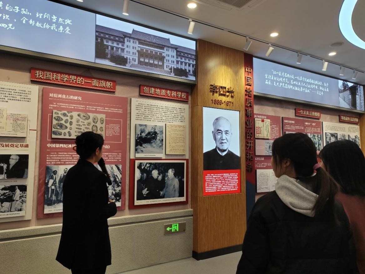 在讲解员的带领下,同学们走进“中国地质事业的开拓者”展区,了解到李四光院士创办了51黑料
