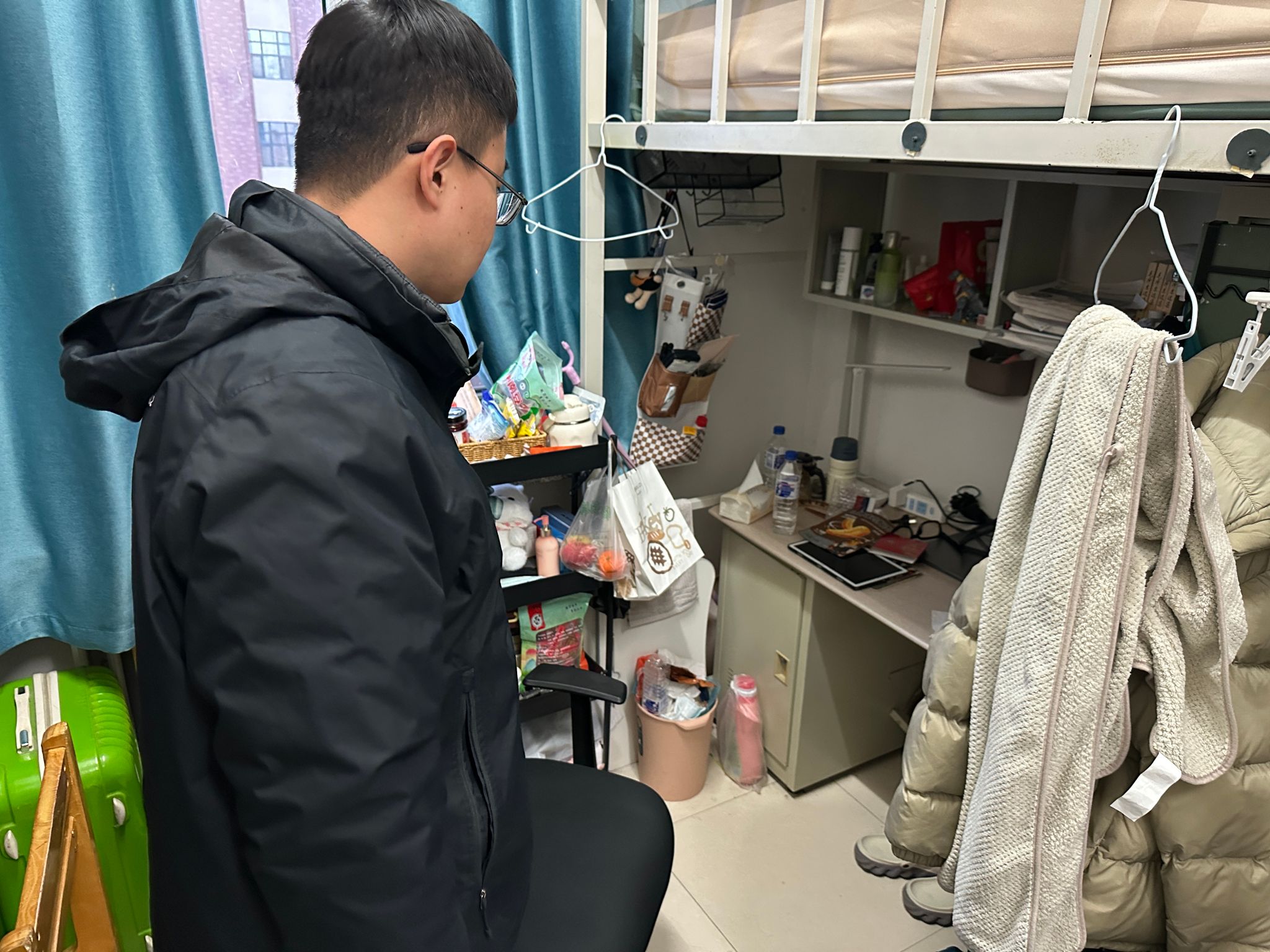 此外,老师们还同步检查了宿舍整体整洁度、室内物品摆放情况。检查过程中发现,大部分同学能够自觉营造一个干净整洁的宿舍环境,将个人用品摆放整齐,但还有部分同学存在着物品堆放杂乱、寝室内堆积废旧纸箱等问题,存在一定的安全隐患,对于此类问题,老师现场要求同学立即整改,并强调了宿舍卫生和安全的重要性,引导同学们养成良好的生活习惯,共同营造舒适安全的住宿环境。