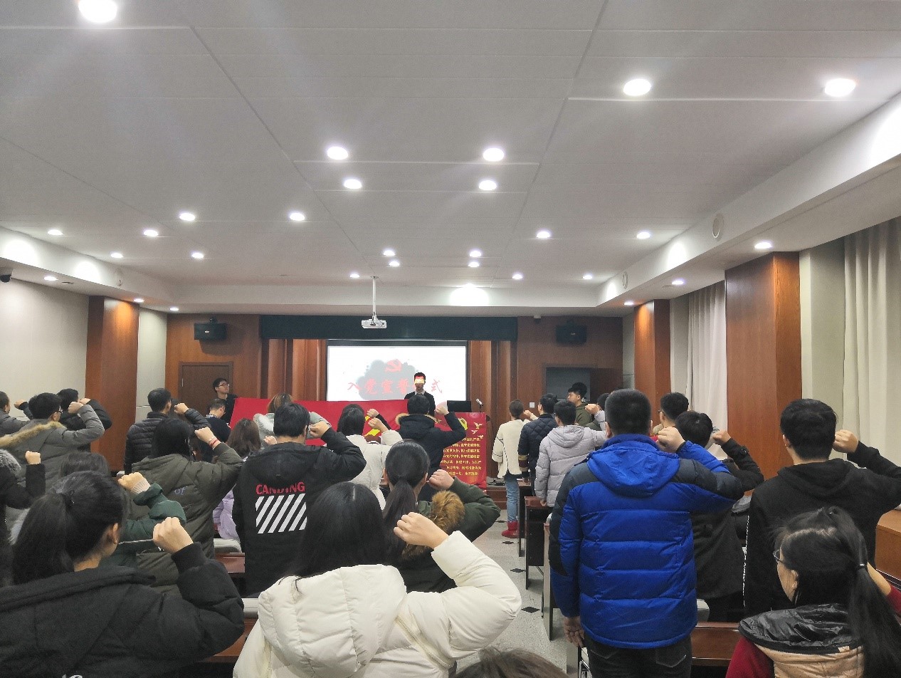 党委书记杨洲、党委办公室主任周小萌老师、辅导员李功宇老师、各年级党支部书记以及本年度新发展的研究生与本科生预备党员参加了本次活动。