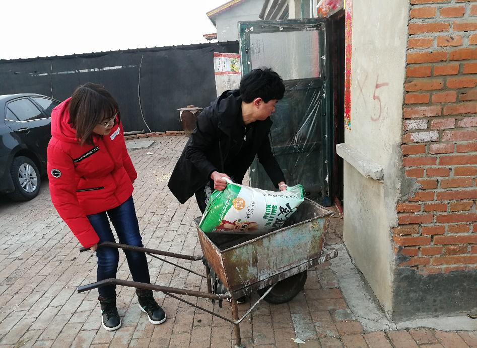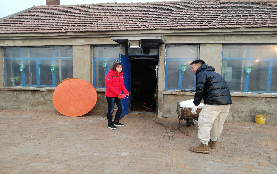 2月13日,团队前往连大爷夫妇家和他们夫妇一起聊起家长里短。连大爷两口一起生活在这个靠近村子边上的小院子里,家里挂了些旗,还有新贴上去的对联,年味十足。连大爷家是村里的贫困户,屋子中摆设十分简约,进屋是厨房,然后就是带有一间大炕的卧室,冰柜、洗衣机、电视机都在这个屋子里,还有一个十分狭小的屋子,有一张单人床,大娘说那是外孙子回来。住的地方。几个男生帮着大爷把要掉了的春联重新贴了一下,帮大娘扫扫地,收拾收拾厨房,帮着弄弄炉灰。干活之余连大爷谈到现在农民的生活是真的难,物价是十年前的两到三倍,供孩子上学、治病甚至达到了十年前的五六倍,而今年粮食的价格已经快要跌到十年前的水平了,猪肉的价钱已经跌到了十年前的水平了,尤其是今年的猪肉价钱是近几年最低水平。因为赚钱不易,所以他们画的每一分钱都格外仔细。