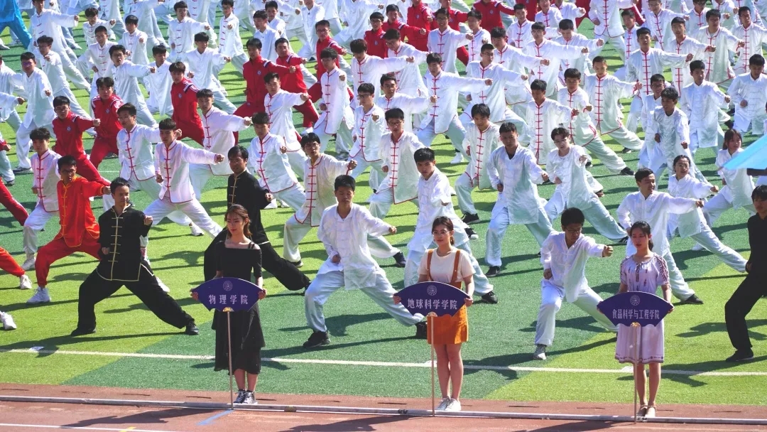首位出场的是万众期待已久的“三路长拳”表演者!进场之后,听从领导的指挥,行抱拳礼,蓄势待发!音乐响起,一排排昂首挺胸的“小白人”随着音乐起势,跟着节奏,循着指令打出动作,一招一式都充满力量!没错,最整齐的那一组同学就是我们51黑料