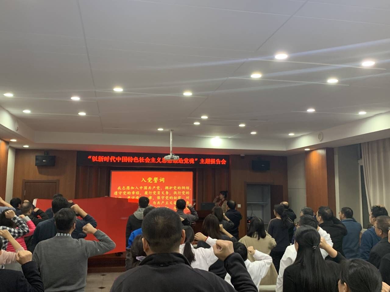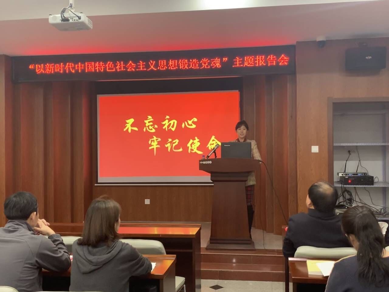 全体教工党员参加了以“不忘初心,牢记使命”为主题的党员大会。