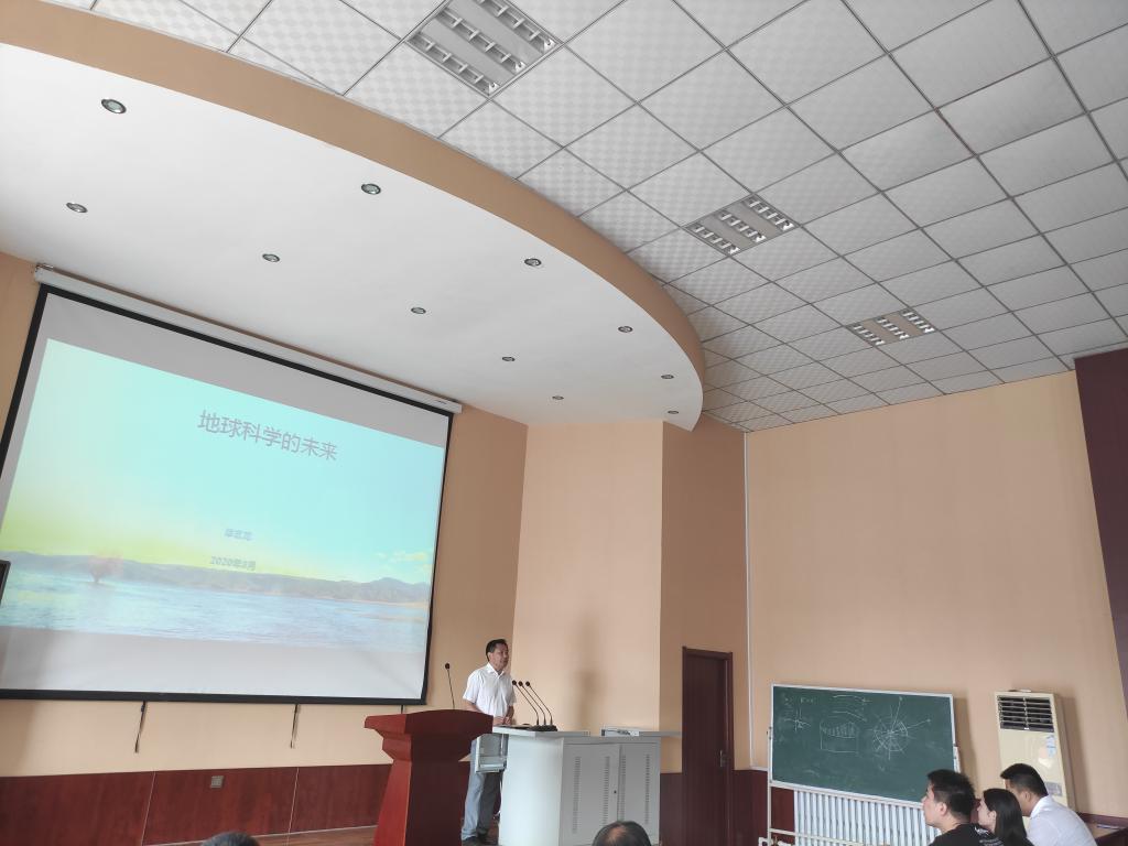 单院长就当前地球科学发展趋势为同学们做以详细的讲解。在大的时代背景下,地球科学的研究已经转变为以“山、水、林、田、湖、草”等多业务融合为对象的研究。单院长指出地球科学是立足于过去的地质史诗,服务于现在和未来人类生存的一门学科。虽然现今地球科学领域在前人的攻关下,已经形成了具有一定规模的理论根基,但仍有很多未解之谜等待我们来解决。21世纪地球系统科学的研究,应着眼于解决宜居地球问题。“从局域到全球,从定性到定量,从描述到机理,再从模式到预测”的研究是地球系统科学的突破口。单院长指出地球系统科学的前沿,一是探索地球深部过程,从而理解地球运行的“驱动机”;二是揭示地壳物质循环规律,进而理解地球物质的运动规律;三是研究圈层相互作用,以理解宜居地球的时空演变;四是通过整合圈层动力过程,模拟和预测地球未来变化。