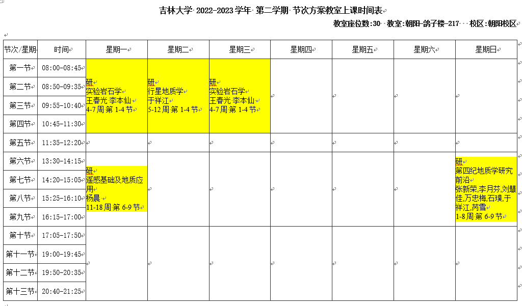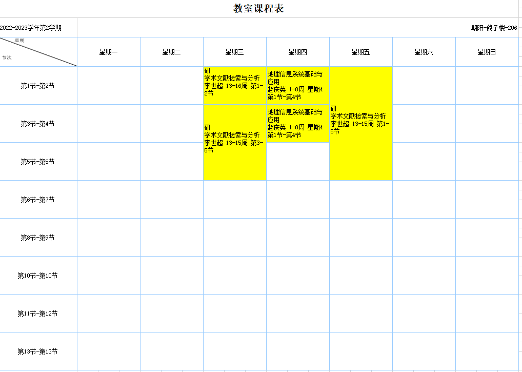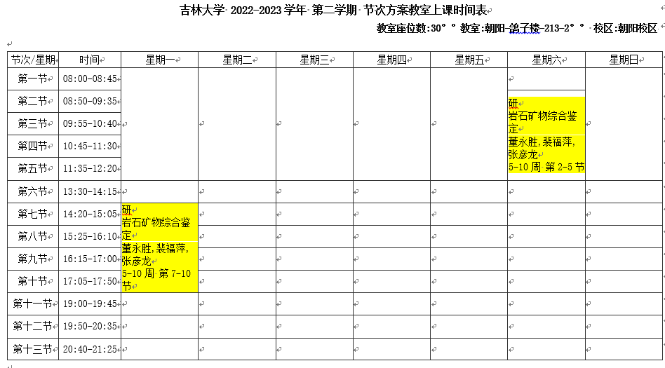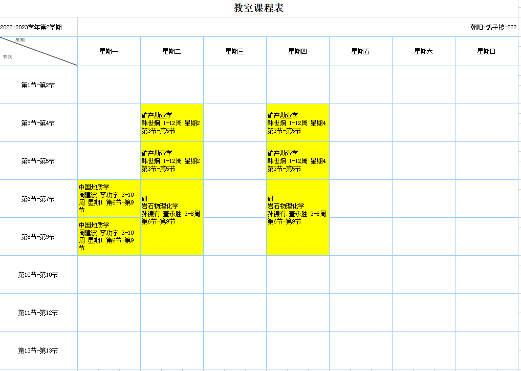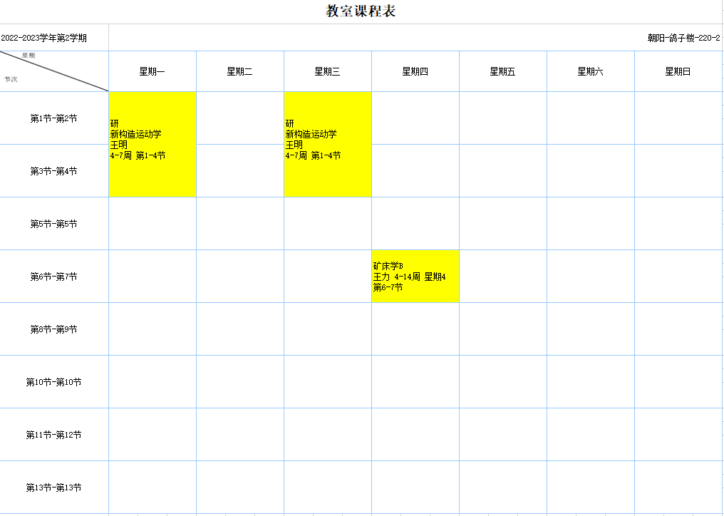2022-2023学年第2学期课程表