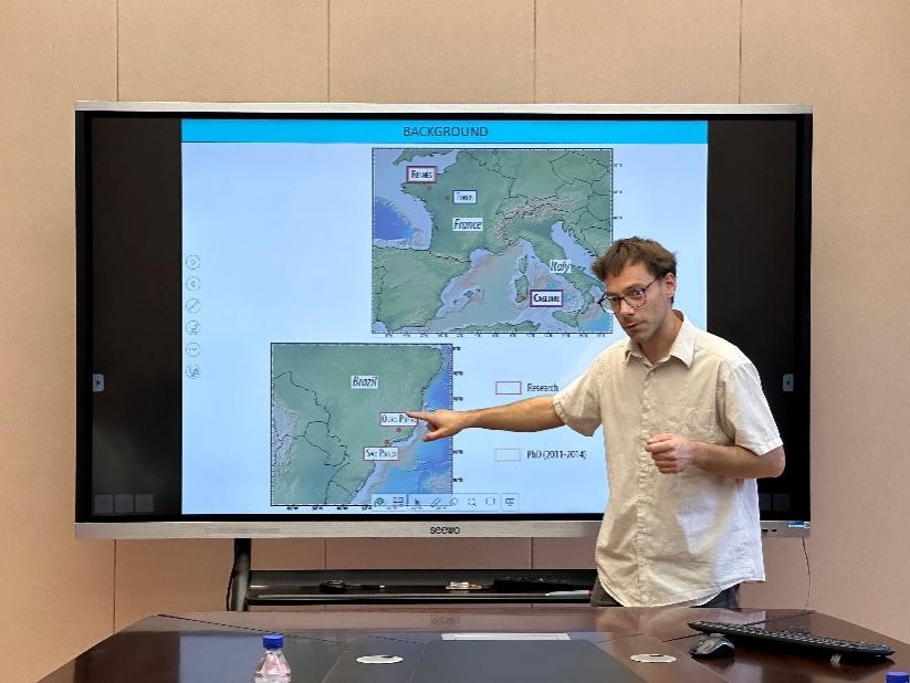 9月22日上午,卡米尔副教授以Earth’s Surface at the Onset of the Great Oxidation Event: Cold, But Not Freezing(大氧化事件开始时的地球表面 : 寒冷而不是冰封)为题,为学院师生做学术报告,介绍对于太古代-元古代之交,通过地球化学手段对与全球气候变化研究的最新成果。